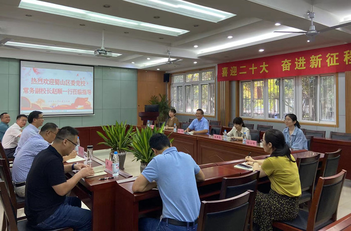 9月16日上午,中共蜀山区委党校常务副校长赵顺一行到我校马克思主义学院,就推进马克思主义学院高质量内涵式发展,提升教育教学、人才培养和服务社会的能力等进行交流。该院党委副书记、院长柳泽民,院党委委员、副院长储著源出席会议。