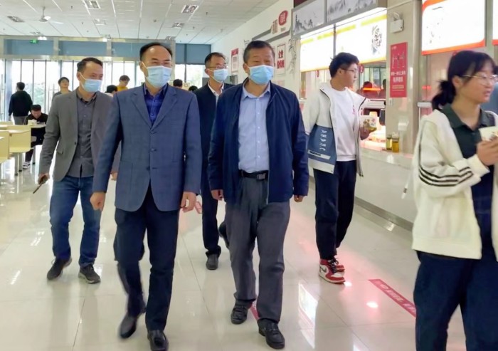肖圣龙先后来到校区大门、快递服务中心、食堂等重点场所,看望慰问在疫情防控一线的安保、物业、餐饮服务等工作人员,详细询问了校门进出管控、物资储备、日常消杀、食品安全等疫情防控措施落实情况。在核酸检测现场,肖圣龙叮嘱正在排队的同学们戴好口罩,要保持安全距离、规范采样流程。