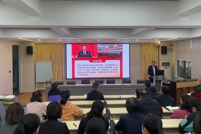 程孝文强调,深入学习贯彻党的二十大精神是当前和今后一个时期附小的重要政治任务,全体党员领导干部和教职工要努力学深悟透,全面把握党的二十大报告的精神实质,准确把握学什么;要坚持学以致用,全面开展学习贯彻党的二十大精神工作,准确把握怎么学。要迅速组织全覆盖学习、“关键少数”示范学习、充分融入课堂学习、阐释宣讲深度学习、精心营造学习氛围以及学以致用推动工作,把党的二十大精神落实到坚持和加强党对学校工作的全面领导上来,落实到做好今后一段时期政治安全和校园安全稳定工作上来,落实到全力推进附小各项事业高质量发展上来,落实到培育德智体美劳全面发展的社会主义建设者和接班人上来。