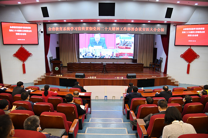 会议强调,学习宣传贯彻党的二十大精神,是当前和今后一个时期教育系统的首要政治任务。全省教育系统学习宣传贯彻党的二十大精神要坚持对标对表,全面准确领会党的二十大的重大意义和精神实质;要坚持做深做细,迅速兴起学习宣传贯彻党的二十大精神的热潮;要坚持从严从实,确保党的二十大精神在全省教育系统落地生根、开花结果。要以高度的政治责任感和历史使命感,加强理论武装、做到“两个维护”、发扬斗争精神,抓住深刻领悟“两个确立”的决定性意义这个根本,原原本本学、系统培训学、有机融入学,在学习领会上学深悟透。要精心组织宣传、集中开展宣讲、深化研究阐释,在宣传宣讲上入脑入心。要聚焦坚持党的全面领导、落实立德树人根本任务、建设高质量教育体系、服务经济社会发展大局,在贯彻落实上聚力用劲。要始终牢记“三个务必”、深化全面从严治党、持续改进工作作风,在作风建设上持之以恒。