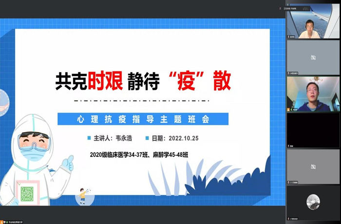 强化正面引导。各学院主动将抗疫力量转化为育人力量,积极召开线上主题心理班会,依托微信、QQ、腾讯会议等网络平台,通过直播、观看学习视频、线上讨论、线下活动等多种形式,针对疫情防控期间宿舍人际关系建设、心理健康知识、科学备考心态等内容展开宣讲,并结合学院专业特色和学生特点开展系列特色主题活动,让同学们进一步树立信心,保证战胜疫情的“心桥”畅通无阻。