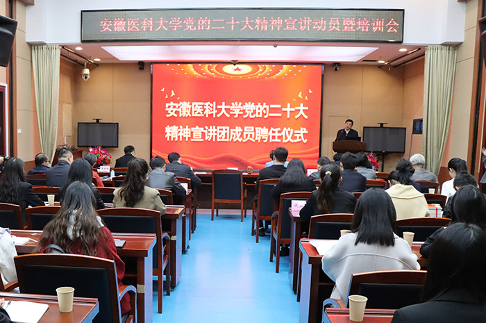 谢瑞瑾强调,学习宣传贯彻党的二十大精神是当前和今后一个时期的首要政治任务,也是学校加快建设国内一流高水平医科大学的必然要求。他要求,全校上下要把学习宣传贯彻党的二十大精神作为贯穿各项工作的核心主题,聚焦党的二十大报告和党章作出的一系列新规定新要求,努力在学懂弄通做实上狠下功夫,通过扎实系统的学习做到融会贯通、掌握精髓。要认真做好党的二十大精神的宣讲工作,教育引导全校师生医护员工衷心拥护“两个确立”、忠诚践行“两个维护”,奋进新征程、建功新时代。要强化党的二十大精神宣讲工作的组织保障,把学习宣传贯彻党的二十大精神摆在全局工作重中之重的位置,确保宣讲工作顺利开展、取得实效,推动学校事业更高质量发展。