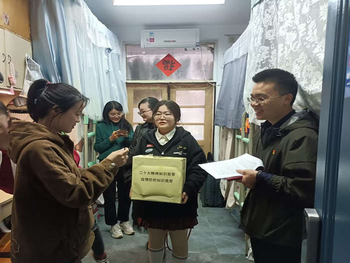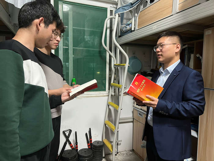 11月上旬,校党委学工部组织全体思政辅导员深入学生宿舍,开展党的二十大精神主题宣讲活动,通过面对面、零距离的微党课,打通学习宣传贯彻工作的“最后一公里”,把党的二十大精神带进到学生身边,把“冒着热气”的大会精神带到学生中间。