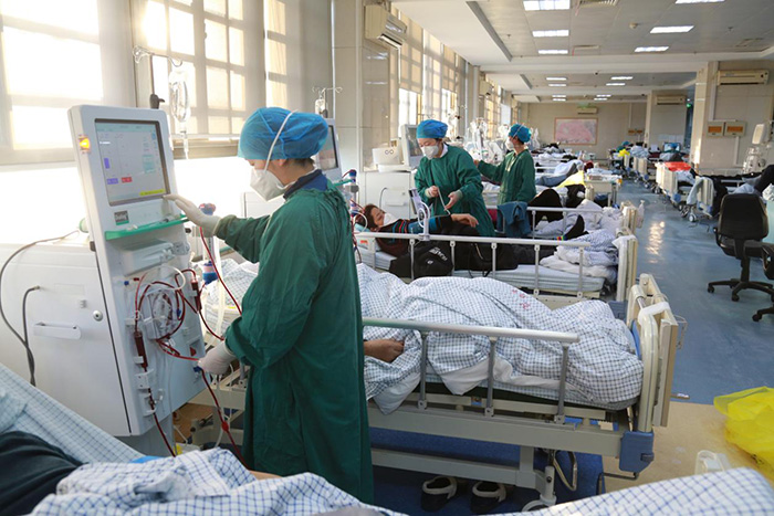 发热门诊、重症医学科、急诊内科及重症监护病区(EICU)、神经内科重症监护室(NICU)以及肾脏内科血液透析室等重点临床科室的有效运转,其他临床科室“不停摆”,需要医院有效统筹调配人力物力,更离不开“阳了”的白衣战士们克服身体不适,依旧坚守岗位的无私奉献。