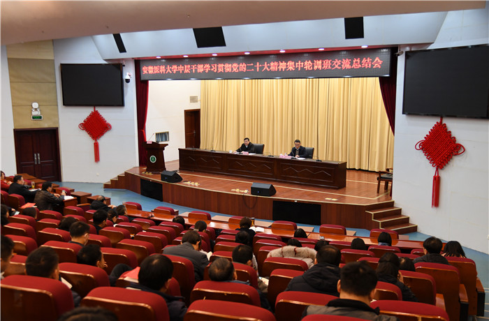 交流会上,单永强、丁建飞、陈旭林、解雪峰、赵婷婷等五位学员代表结合学习内容,抓住学习贯彻党的二十大精神这一重要政治任务,围绕国内一流高水平医科大学建设目标要求,联系基层组织建设、医学教育、人才培养、医院高质量发展、保障服务等方面工作,作了交流发言,充分体现出以问题导向对标对表、以效果导向奋勇争先。