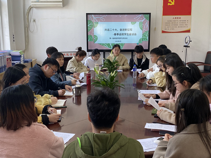 3月3日下午,随着各年级学生考试结束,第一临床医学院召开学生座谈会,及时了解返校学生思想状况,帮助同学们发现和解决当前阶段学习生活中遇到的问题。该院学生党总支副书记沈慧出席会议,各年级辅导员代表和学生代表参加座谈。