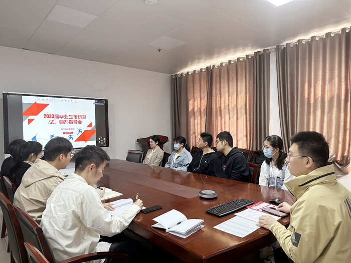 近日,第二临床医学院采取线上线下相结合的方式举办2023届毕业生考研复试调剂指导会,进一步推进学院考研工作。该院学生党总支副书记丁瑞主持会议。