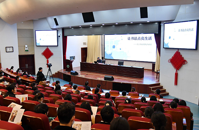 学校相关部门、学院负责人,校大学生书画爱好者协会成员、大学生全媒体中心学生记者及各学院学生代表等200余人现场聆听了报告。(新闻中心 人文医学学院)