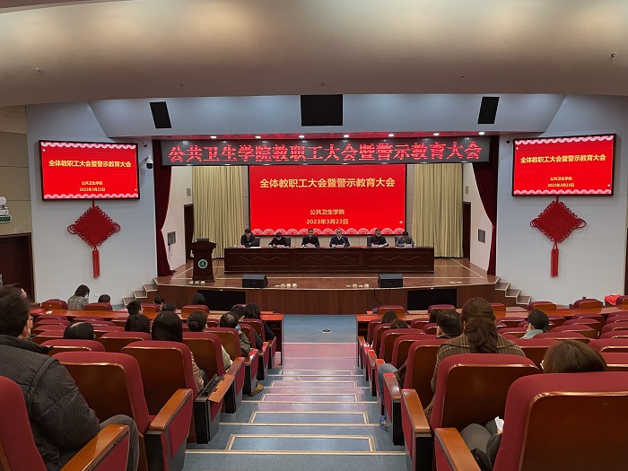 3月23日上午,公共卫生学院召开教职工大会暨警示教育大会,学习传达全国两会精神以及学校全面从严治党暨警示教育会议精神。该院党委书记马军成主持会议并讲话,院长王华对学院2023年重点工作提出要求,各分管领导就近期工作进行具体安排。