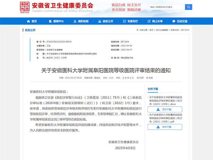 该院此次获批“三甲”医院,将进一步提升和优化阜阳当地的区域医疗卫生资源配置,为广大百姓就医带来了更多便利。站在新起点上,医院将加快推进二期建设,利用安医优质资源促进医院高质量发展,充分发挥大学直属附属医院医教研协同发展的功能任务,为人民群众提供更加安全、优质、高效的医疗卫生服务,为培养医疗卫生专业人才提供优质平台,努力建成国内知名、省内一流、特色鲜明的高水平医科大学附属医院。(附属阜阳医院 杨海峰 曹亚)