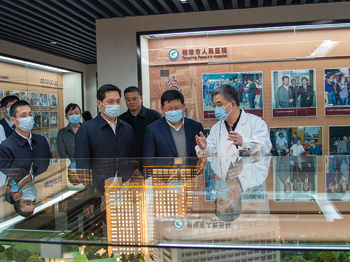 顾家山一行实地考察调研了铜陵市人民医院和铜陵市立医院。在铜陵市人民医院,顾家山参观了医院党建教育馆,详细了解医院党建领航“四大行动”,听取医院以“大党建”工作格局引领医院高质量发展工作开展情况的介绍。在铜陵市立医院,他仔细听取了医院深化内部改革、加快转型发展、推动内涵建设的经验介绍,以及该院成功探索出企业医院移交改制的“铜陵模式”,并了解了医院助理全科医生培训基地的建设情况。