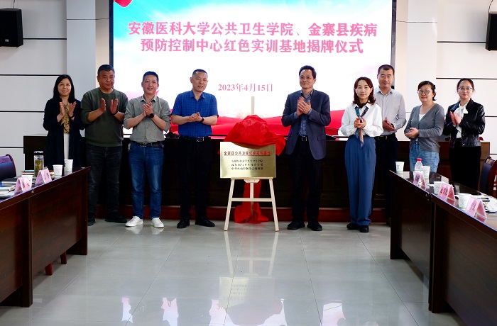 近日,公卫学院师生一行前往金寨县开展社会主义核心价值观主题实践教育活动,并与金寨县疾病预防控制中心共建红色实训基地。该院党委书记马军成,金寨县卫健委党组成员、副主任肖之林和县疾病预防控制中心主任俞亮出席红色实训基地揭牌仪式,并共同为基地揭牌。
