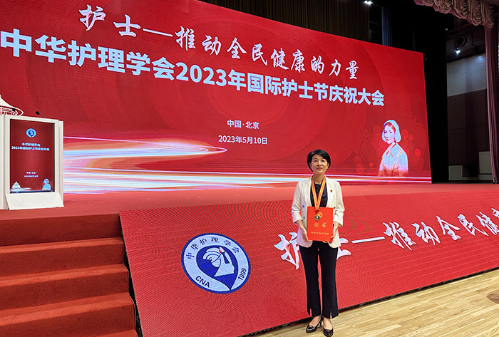 5月10日,中华护理学会2023年国际护士节庆祝大会在北京召开,隆重表彰在我国护理事业各个领域作出突出成绩的“杰出护理工作者”,我校第一附属医院护理部副主任、高新院区护理部主任、高新护理党支部书记韩江英光荣入选2023年“杰出护理工作者”。
