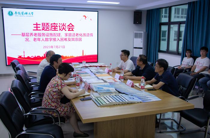 安徽老年开放大学领导班子成员及相关部门主要负责人,我校“防治结核疾病 弥合数字鸿沟”暑期社会实践团全体成员20余人参加座谈交流。(卫生管理学院 王曦)