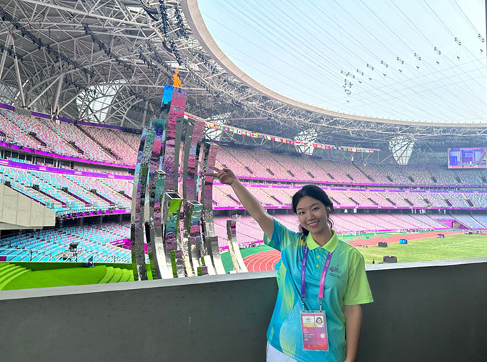 “那是一段终生难忘的经历,”当被问到参与2023年杭州第十九届亚运会的志愿服务工作感受时,李霂梓回忆道,“令我感触最深的是赛事结束后,观众会自发地向志愿者们表示感谢。他们递到我们手上的中秋月饼,以及散场时一句句‘辛苦了’,都让我更加深刻感受什么是‘奉献、友爱、互助、进步’的志愿服务精神。”
