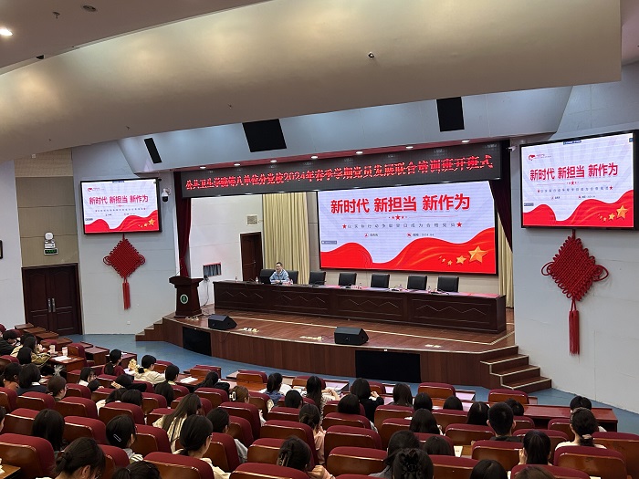 4月17日晚,公共卫生学院、基础医学院、口腔医学院、卫生管理学院、马克思主义学院、巢湖临床医学院、人文医学学院、精神卫生与心理科学学院等八所学院,在图书馆第一学术报告厅联合举办2024年春季学期入党积极分子、发展对象培训班开班典礼。
