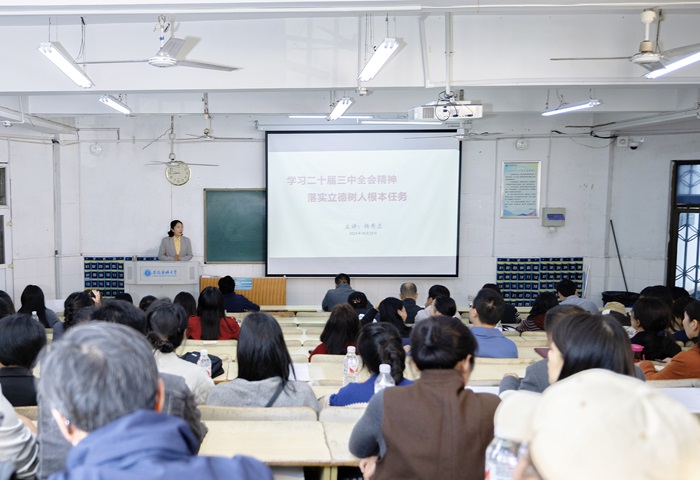 10月23日下午,人文医学学院党委书记杨秀兰以《学习党的二十届三中全会精神 落实立德树人根本任务》为题,为学院全体教职工党员讲授专题党课。