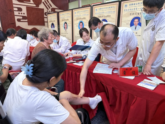 在桐城市中医院,来自该院普外科、消化内科、神经外科等12个科室的专家团队为闻讯而来的就医群众坐诊,免费提供疾病咨询、健康指导和基础诊疗服务,并在义诊结束后进入病房教学查房,与当地医生探讨疑难病例的诊治。