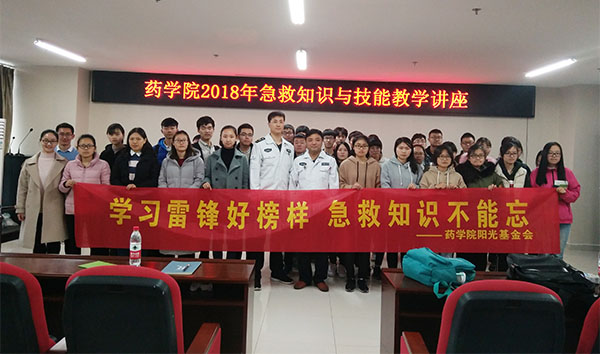 3月18日上午,药学院举办急救知识与技能教学专题讲座。合肥市急救中心赵刚、袁哲佩老师应邀参加活动。