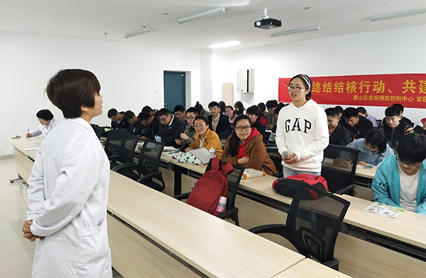 “微暖” 志愿服务队志愿者分组在安医大校园内开展结核病防治宣传,宣传组负责向师生们发放宣传页,讲解结核病防治知识;竞赛组组织开展知识竞答,检验宣传效果。学院还邀请校医院贺晓琼医生进行结核病防治知识讲座。讲座上,贺医生介绍了目前结核病防控工作所面临的形势,详细讲解了结核病的传播途径和防治措施,让大家正确理解肺结核病。并从自己做起,从健康生活方式做起,养成良好卫生习惯。