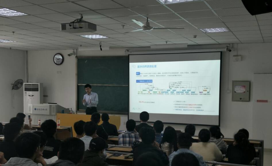 近日,卫生管理学院在 11302 教室举办 “医疗信息技术” 前沿知识讲座,主讲人:上海森亿智能公司 CEO 张少典博士。卫生信息系部分老师及全体信息专业学生聆听了讲座。