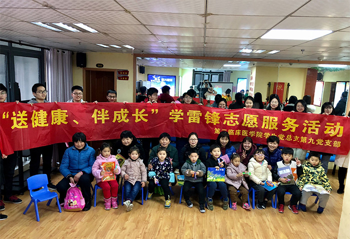 3月4日下午,学“雷锋日”来临前夕,第二临床医学院学生党总支第九党支部的党员同学和部分入党积极分子走进翡翠路校区附近的翠庭园社区服务中心童悦儿童之家,开展3月份主题党日“送健康 伴成长”学雷锋志愿服务活动。