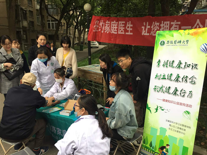 近期,卫生管理学院联合蜀山区三里庵社区卫生服务中心,开展了主题为“掌握健康知识, 树立健康信念,形成健康行为”的健康知识公益宣传活动。