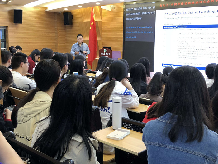 10月10日下午,应基础医学院院长、校留学人员联谊会会长沈玉先邀请,新西兰-中国非传染性疾病研究合作中心张虎教授在力行楼四楼实验教学中心报告厅作《新西兰-中国非传染性疾病研究合作中心(NCD CRCC)简介及国家留学基金委与NCD CRCC联合资助计划》的报告。