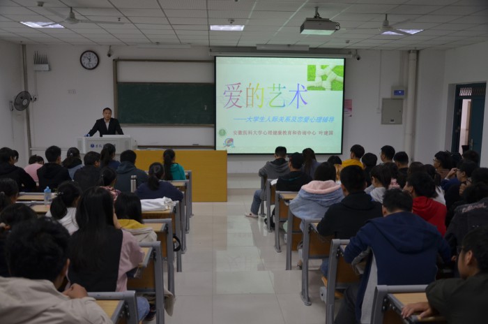 叶建国从大学生人际关系的意义、构成、特点等谈起,分析了人际交往中出现“交不到知心朋友”“话不投机半句多”等现象的原因,引导学生认识到平等尊重、诚实守信是处理好人际关系的关键。谈到大学生恋爱话题,他强调“认识理解对爱的期望”很重要,更要学会正确看待和处理恋爱中的苦恼困惑,明白“爱情的本质是一种承诺”,要对自己负责,对他人负责。