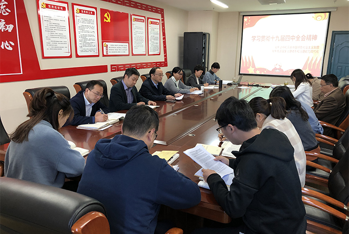 会议以PPT形式,详细解读了《中国共产党第十九届中央委员会第四次全体会议公报》,并对其中“3个判断”“13方面优势”“总体目标”和“13个制度体系”等内容作分析和强调。