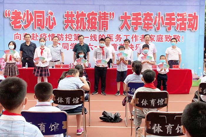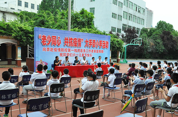 5月29日下午,六一儿童节即将到来之际,校关工委在附属小学运动场举办“老少同心 共抗疫情”大手牵小手活动,与80位我校抗疫医护人员子女欢聚一堂。校关工委副主任王怀才、校教育基金会理事长孙爱和出席活动。