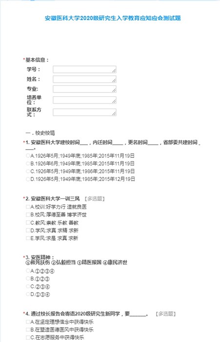应知应会,检验效果。完成校级集中入学教育后,党委研工部组织全体2020级研究生新生进行线上入学教育知识“应知应会”测试,内容涉及校史校情、学生管理、安全知识、常态化疫情防控等内容,全面考察学生的安全防范意识、校纪校规掌握程度和对培养过程各项要求的理解。据了解,2020级研究生测试参与率达100%,优秀率达90%以上。