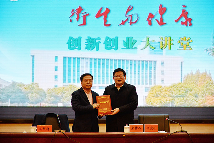 12月28日下午,我校第6期“卫生与健康”创新创业大讲堂开讲,欧普康视科技股份有限公司董事长陶悦群博士应邀与青年师生分享创业经历及成长体会。校党委书记顾家山主持报告会,校党委副书记刘群英、副校长梁朝朝和欧普康视科技股份有限公司有关负责人出席报告会。
