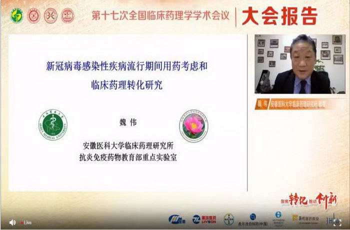 临床药理研究所魏伟教授受组委会邀请主持开幕式,并作了题为《新冠病毒感染性疾病流行期间用药考虑和临床药理转化研究》大会报告。副所长张玲玲教授受邀作《炎症免疫病及抗炎免疫药物临床研究》的大会报告并主持闭幕式。