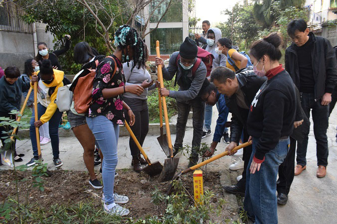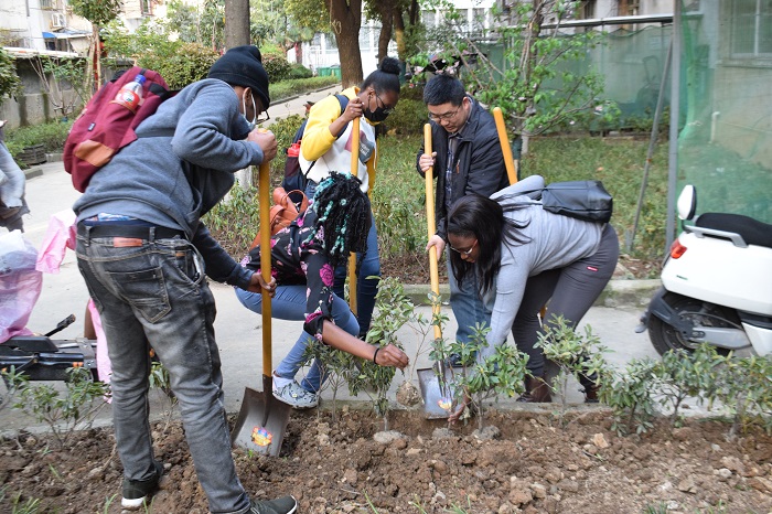 美化校园环境 我校国际学生义务植树