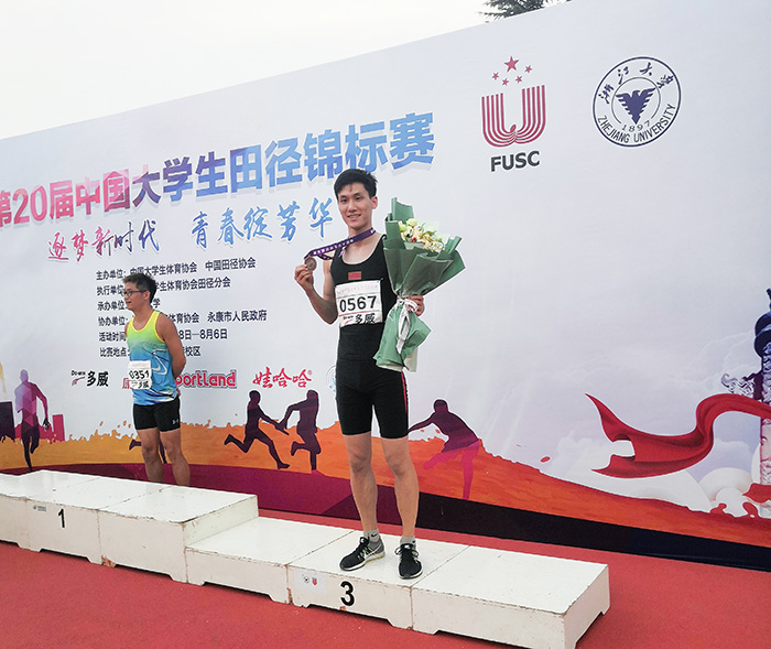 近日,2021年第20届中国大学生田径锦标赛在浙江大学紫金港校区举行。我校首次参加该锦标赛便获得奖牌,参赛选手朱小东同学表现优异,斩获跳远项目季军。