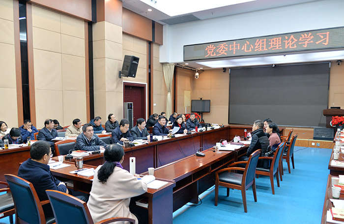 1月6日下午,学校召开党委理论学习中心组会,专题学习研讨党的十九届六中全会精神。省委党史学习教育第三巡回指导组成员到会指导。校党委理论学习中心组组长、校党委书记顾家山主持会议。校长曹云霞,校党委副书记刘群英,副校长余永强、梁朝朝、肖圣龙、吕雄文出席。