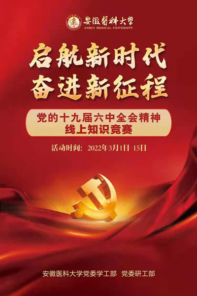 3月1日至3月15日,学校组织开展学习党的十九届六中全会精神线上知识竞赛,深入学习贯彻习近平新时代中国特色社会主义思想和党的十九届六中全会精神,深入推进全会精神“三进”工作,进一步引导广大师生从党的百年奋斗历程中汲取智慧和力量。