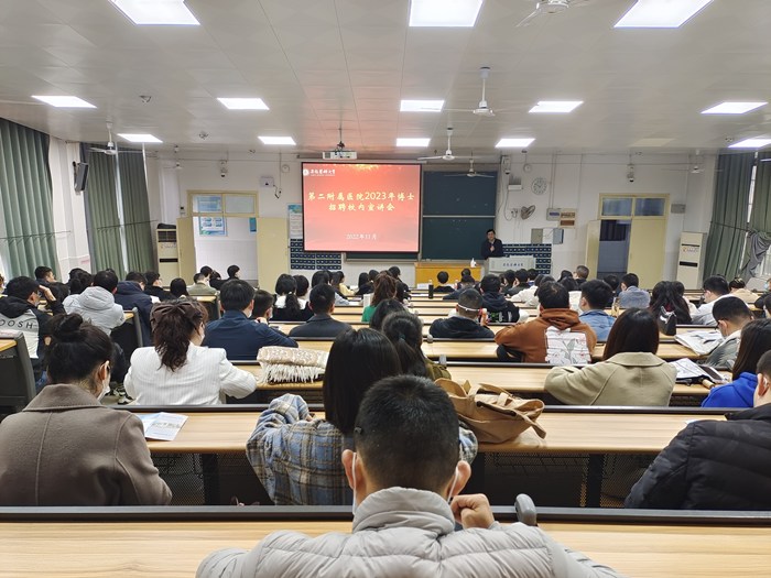 11月18日上午,第二附属医院来校举办2023届博士研究生校内招聘宣讲会,校党委副书记谢瑞瑾出席宣讲会并讲话。