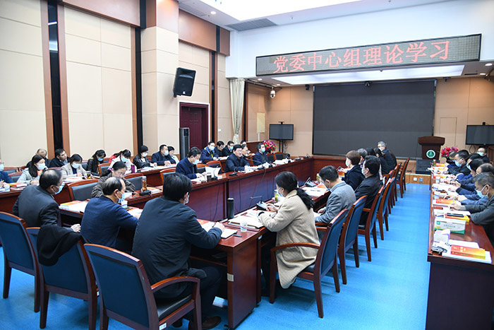 11月24日下午,校党委中心组在知行楼一楼会议室召开理论学习会,学习研讨党的二十大精神和《习近平谈治国理政》第四卷。校党委中心组组长、校党委书记顾家山主持会议。在校校领导余永强、梁朝朝、吕雄文、黄新美参加会议。