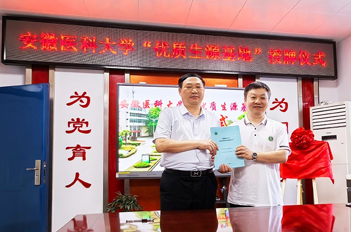 6月26日、27日,药学院党委书记骆广东带队前往六安市,为我校优质生源基地授牌。六安市第一中学党委书记陈明龙、校长经怀德,六安市毛坦厂中学校长余存宝,护理学院副院长赵梅等参加授牌仪式并座谈交流。药学院副院长吴繁荣与“优质生源基地”负责人签订共建协议书。
