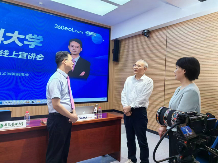 7月和8月处于研考考生择校、备考的关键时期,学校为吸引更多优秀考生报考,紧抓研究生招生宣传重要时点,特别策划研究生招生直播宣讲活动。本次直播宣讲由研究生学院招生工作负责人和13名来自各培养单位的教授、专家担任主讲嘉宾。他们以百年安医大为切入点,围绕考生最关心的问题,就招生政策、学科平台、导师队伍、奖助学金、出国升学、就业前景等热点话题进行详细介绍,通过生动的案例和详实的数据,向考生们展示了我校研究生教育优势和特色。