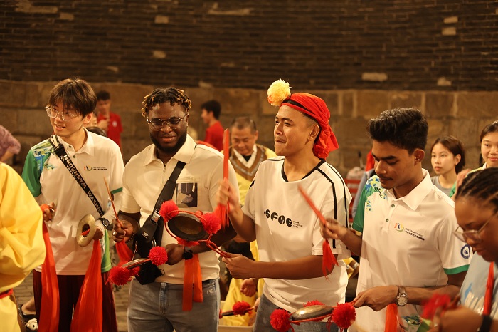 在亳州期间,中外大学生先后来到曹操运兵道、古井产业园、亳州中药材专业市场、亳州养生会客厅等地参观,体验五禽戏、剪纸、面塑等非遗课程,沉浸式感受亳州悠久的历史文化、博大精深的中医药文化和白酒文化。在淮南,大学生们先后探访安徽楚文化博物馆、寿县古城墙、报恩寺、月坝,体验了寿县省级非遗寿州大鼓书,并观看了精彩绝伦的古城灯光秀,深入了解寿县悠久的历史文化和发展进程。中外学生在活动中深入交流,建立了深厚的友谊。