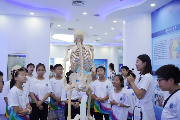 在医院,孩子们走进检验中心、临床病理中心,通过显微镜体验观察细菌,近距离观察病理科医生制作标本的过程,了解取材、脱水、包埋、切片、染色、封片等制作标本的六个步骤。在中药房和中医特色门诊区,医生为孩子们展示了不同种类、形态各异的中药饮片和道地药材,讲述传统中医故事,现场演示穴位按压、针灸,激发了他们对中医药文化的兴趣。