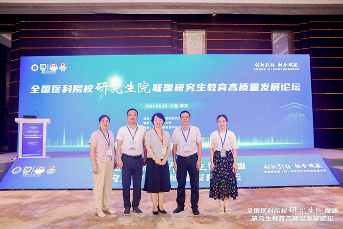 本次论坛以“研究生教育高质量发展”为主题,旨在推动医学人才自主培养能力和培养质量整体提升。我校作为10家常委单位之一,积极参加此次活动,与天津医科大学、中南大学、南京医科大学等众多高校分享研究生教育的经验与成果。会上,校研工部部长潘莉莉受邀作题为《党建引领,做有温度的研究生思政教育》的分享,从“三聚焦”助力研究生高质量发展、“四心”呵护有温度的思政教育等方面,阐述我校在研究生思政教育方面采取的重要举措,与在场其他高校专家的报告相互呼应,共同探讨了研究生教育的新思路、新理念。
