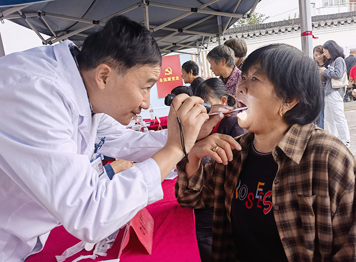 此次义诊共邀请一附院11位知名医疗专家,涵盖心血管内科、内分泌科、肝胆胰外科、眼科、口腔科、妇科、肿瘤内科等科室。义诊当日,枞阳县大港村村部格外热闹,近200名村民获知义诊医讯后,早早来到这里,手持就诊单号,翘首以盼专家到来。64岁的钱阿姨3个月前刚做过心脏外科手术,创口附近皮肤发红,担心是手术后遗症。经几分钟检查和问诊,专家判断钱阿姨患处并非手术后遗症而是皮肤问题。“这就放心了,晚上我也能睡个好觉了。”听到专家的反馈后,钱阿姨迈着轻快步伐离开了。