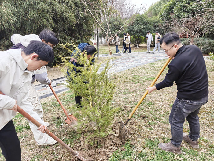 3月11日下午,第二临床医学院组织师生在翡翠路校区开展“‘植’此青绿,伴我成长”义务植树活动,以实际行动践行生态文明理念,弘扬雷锋精神。