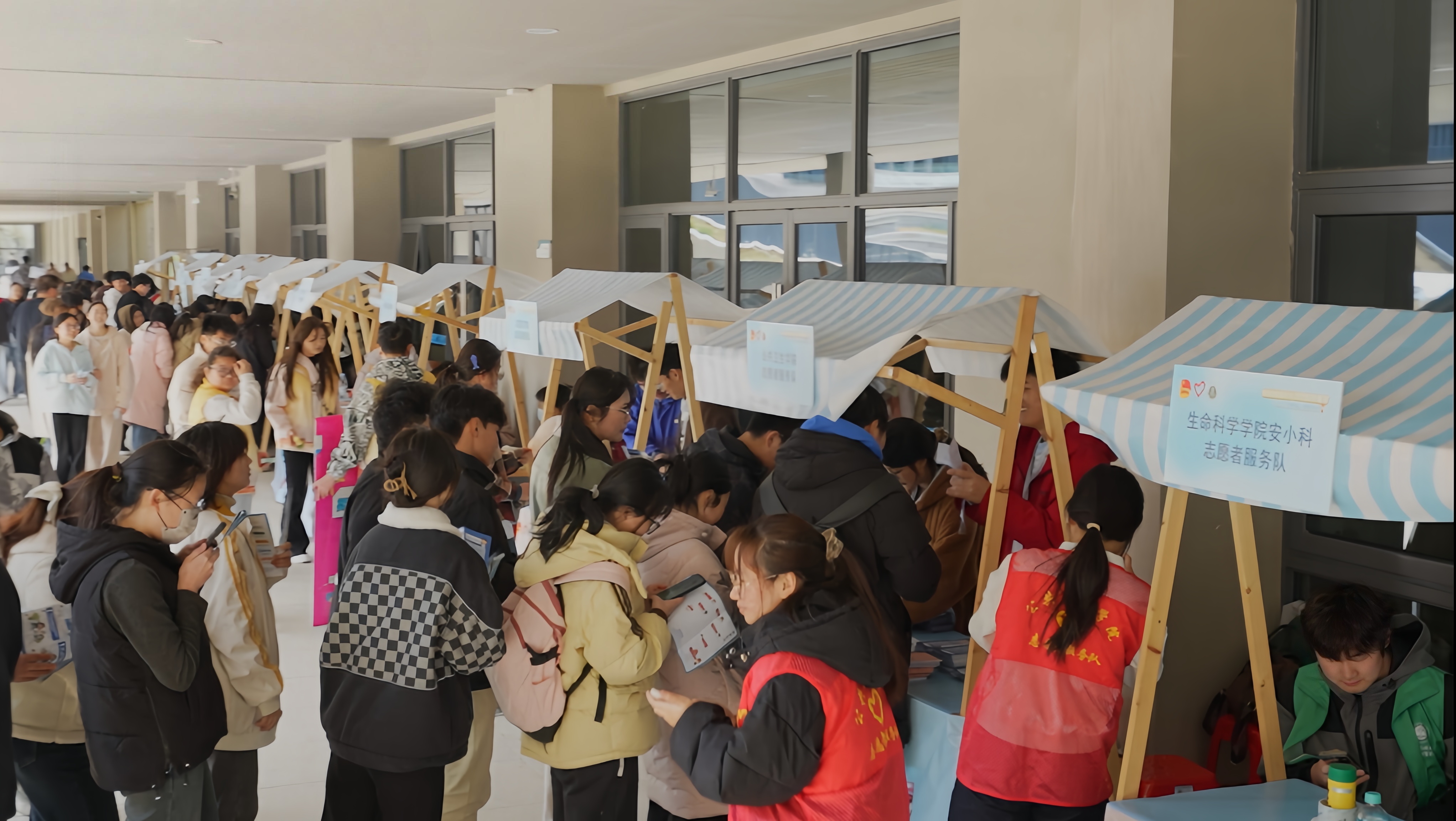 3月16日下午,我校团委组织的2025年志愿服务集市暨学雷锋志愿服务月活动在新医科中心学生宿舍区域举办。