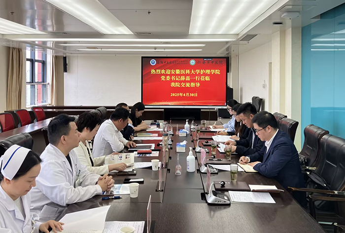 4月30日,护理学院党委书记薛磊、院党委副书记王磊一行前往六安市人民医院、六安市中医院,开展“访企拓岗促就业”专项行动,聚焦毕业生就业、养老服务管理人才培养等内容进行交流。六安市人民医院党委书记孙良业、院长王启伟,六安市中医院院长李光远等参加座谈。