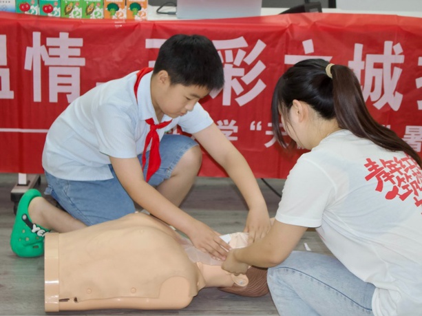 为提升当地青少年儿童的急救意识和急救技能,实践团还发挥医学生的专业优势,为孩子们科普了心肺复苏和海姆利克急救法,并将理论知识与现场实操相结合进行急救示范,带领孩子们亲身体验急救操作。实践团还通过法律知识科普讲座,带领孩子们了解基础的法律知识,学会运用法律手段保护自身权益。